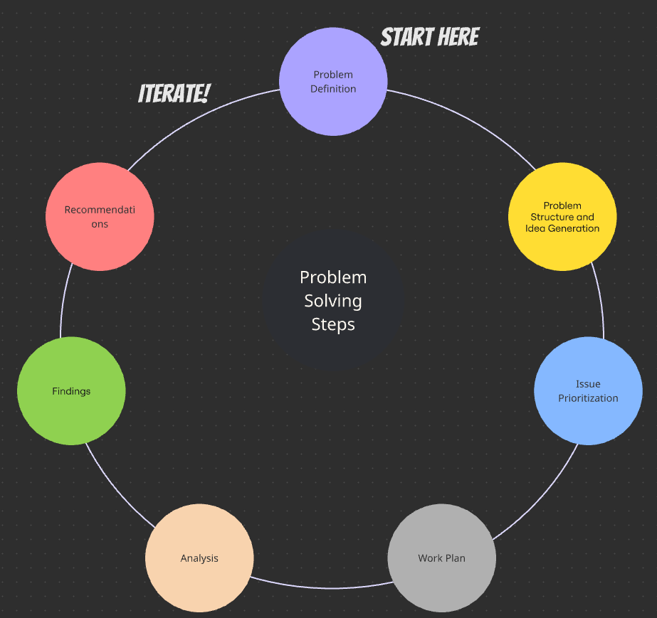 [1] London, S. (2019, September 13). How to master the seven-step problem-solving process. McKinsey & Company. https://www.mckinsey.com/capabilities/strategy-and-corporate-finance/our-insights/how-to-master-the-seven-step-problem-solving-process