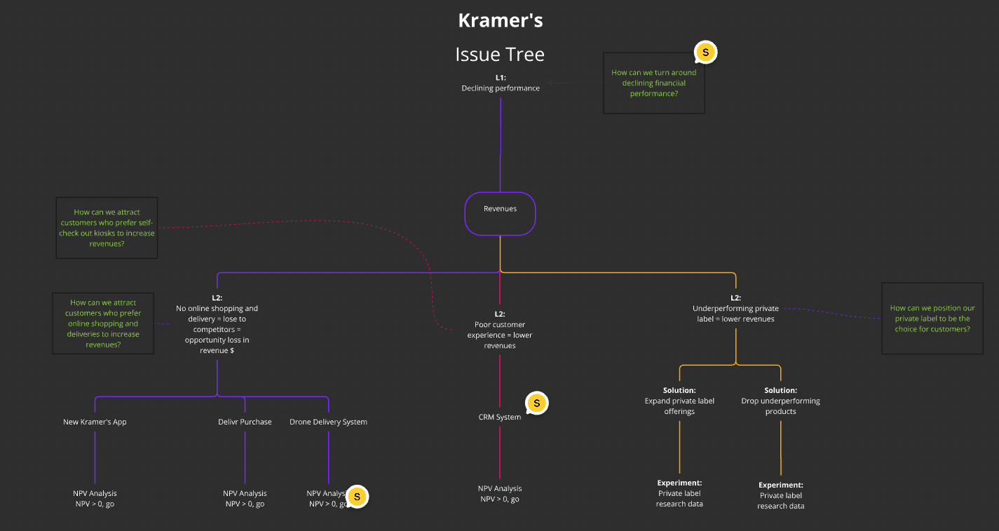 Perhaps one of my favourite ways to structure my problem-solving approach. I found the issue tree method to be effective in breaking down a problem or challenge into manageable buckets and smaller pieces, even in my personal life.